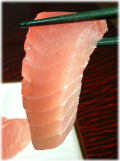 ★チェック3★ 活け揚がりのみを落札 マ グロは延縄(はえなわ)漁と言う漁法で漁獲しています。数十キロメートル以上にも及ぶ延縄は、水揚げするのに数時間かかりますから、早くに水揚げされるマ グロと、水揚げまでに数時間かかったマグロとでは鮮度が違うのです。これは、一流のセリ人だけしか見分けることはできません。 | ★チェック4★ モチモチ感 冷凍マグロは、急速冷凍(-60℃)されています。いくら急速冷凍といえども、少なからず身の細胞が破壊されているのです。当店のマグロは、活け揚がりのマグロを冊とりしているからこそ、身の細胞が破壊されることなく最高のモチモチ感のあるマグロをお届けできるのです。 | |